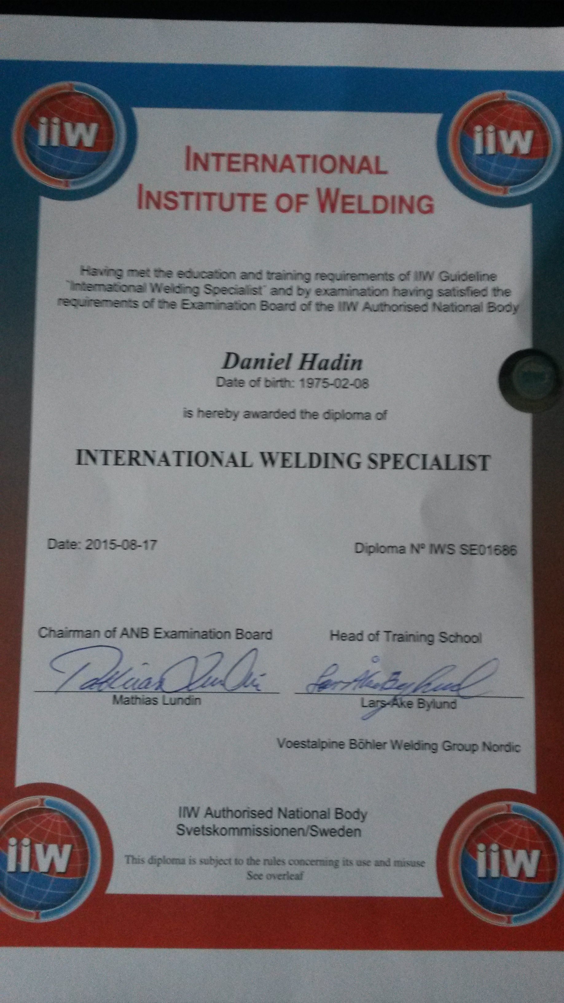 Den har jag, både den praktiska av själva svetsningen och den teoretiska inom standarder.